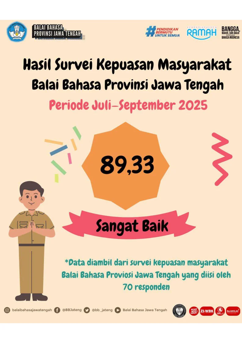 Sasaran survei ini, yaitu (1) pelajar, mahasiswa, guru, dan perguruan tinggi sebagai mitra serta pengguna layanan dari lembaga pendidikan; (2) para pemangku kepentingan (stakeholders); (3) mitra kerja Balai Bahasa Provinsi Jawa Tengah; dan (4) masyarakat umum sebagai pengguna layanan.